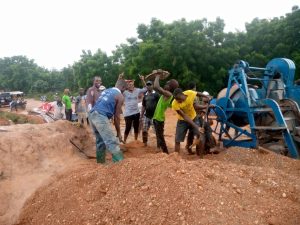 Hon. Betty Krosbi Mensah on site inspecting and supporting the workers
